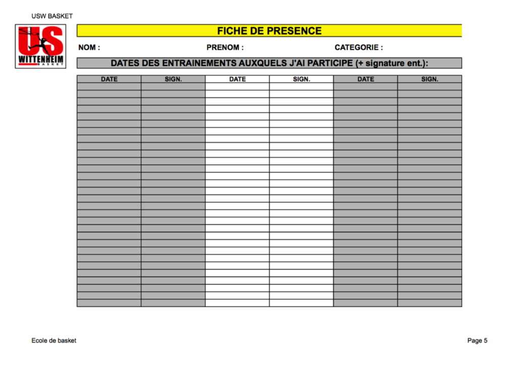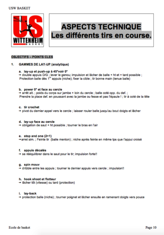 Créneaux d'entrainements