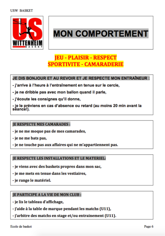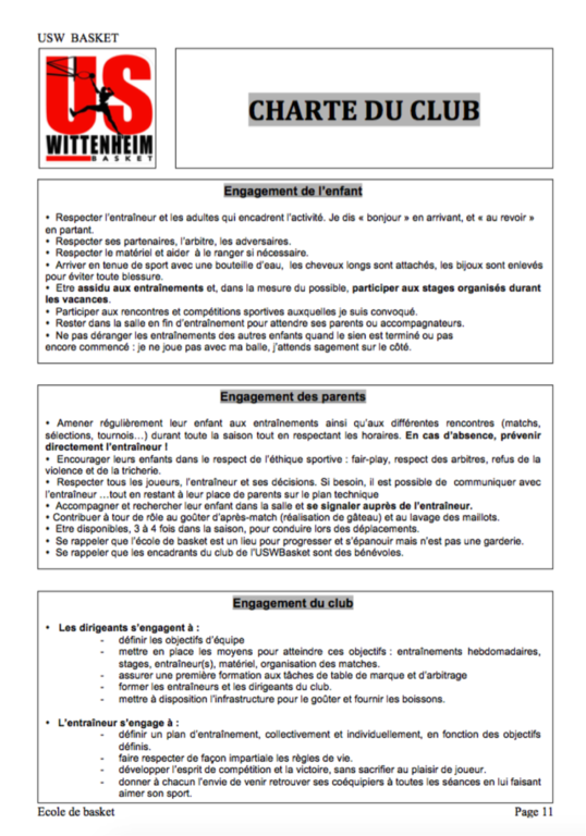 La charte du jeune licencié, et de ses parents