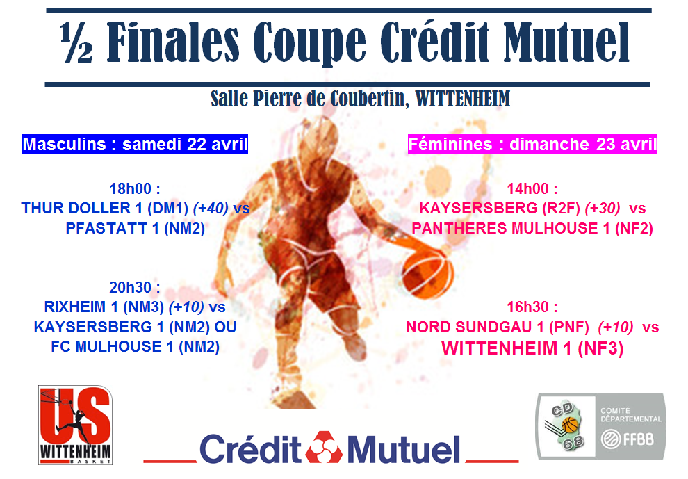 Ce week-end, l'US Wittenheim organise les DEMI-FINALES DE LA COUPE CREDIT MUTUEL et vous encourage à venir supporter son équipe fanion notamment !