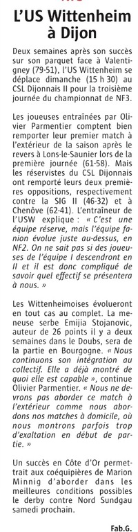 Les SF1 en déplacement à Dijon ce dimanche tenteront de confirmer leur succès d'il y a deux semaines après un week-end de trêve.