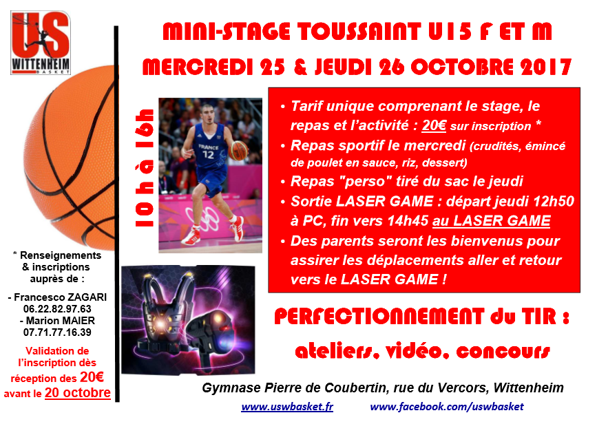 Les vacances de la Toussaint approchent et les mini-stages pour les équipes jeunes de l'USW aussi. Voici le déroulement des stages pour les équipes U11, U13 et U15 F et M.