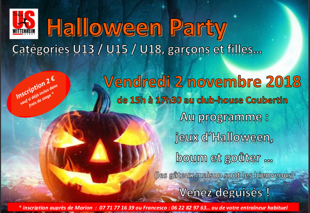 HALLOWEEN PARTY pour les jeunes de l'USW ! (à partir de U13) le vendredi 2 novembre ! Sortez vos déguisements les plus effrayants et joignez vous à nous...