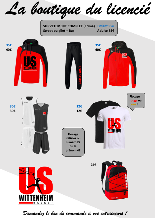 Ouverture de la boutique 2018/2019 de l'USW ! Demandez votre bon de commande et flyers à vos entraîneurs !